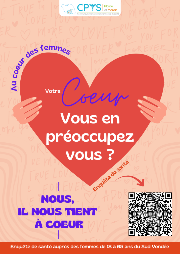 Dans le cadre d’un mémoire de Master Infirmière en Pratique Avancée, une professionnelle de santé du territoire mène une étude sur les perceptions et connaissances des risques cardiovasculaires chez les femmes de 18 à 65 ans du Sud Vendée, en partenariat avec la CPTS Plaine et Marais.