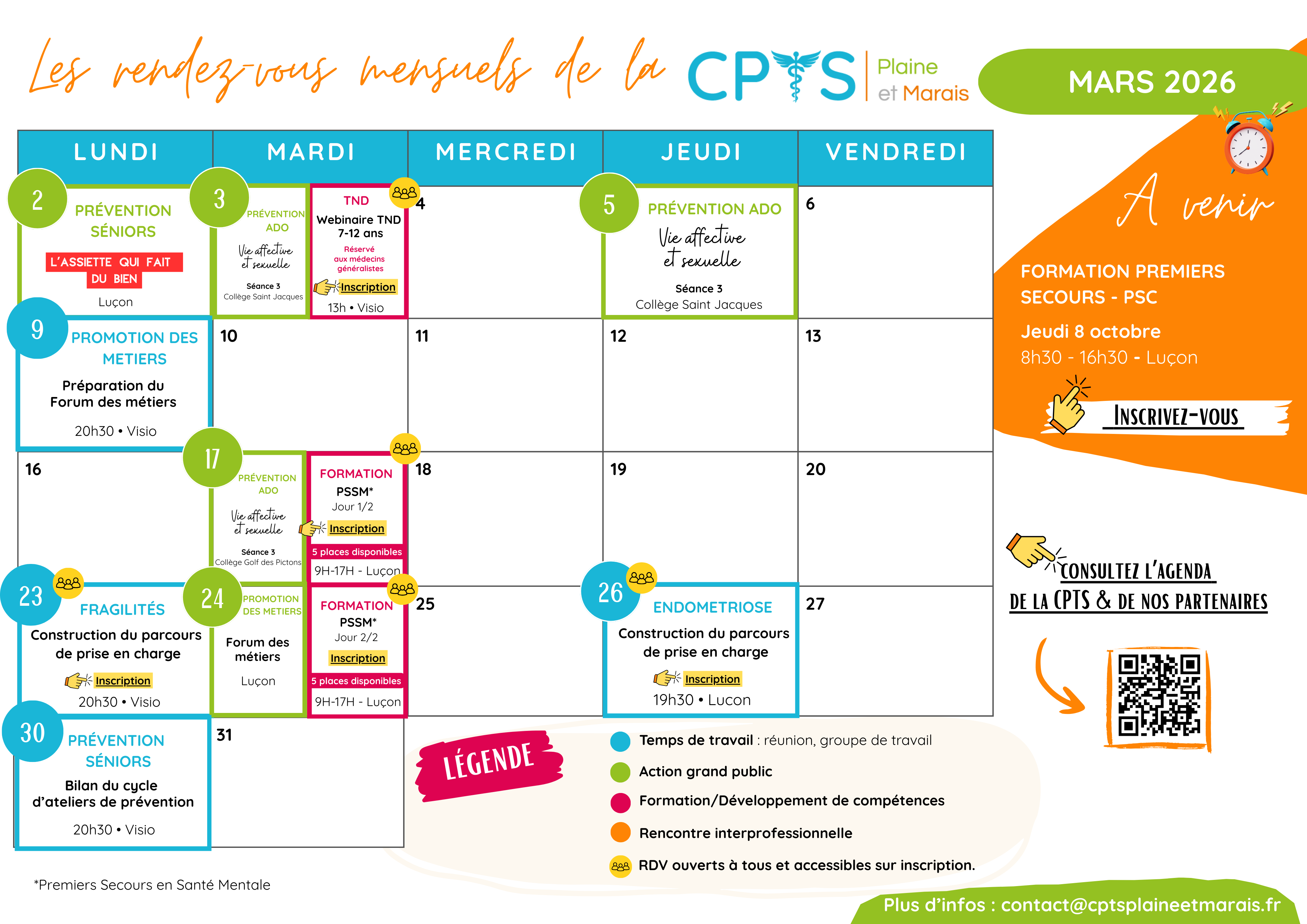 Rendez-vous de la CPTS – Mars 2026 Publication publiée :19 février 2026 Post category:Actualités adhérents / Actualités tout public / RDV de la CPTS Je consulte l'agenda complet et je m'inscris aux actions Vous devriez également aimer Antibiotiques & vaccination : ressources pour votre pratique 14 novembre 2025 Rendez-vous de la CPTS – Mars 2025 25 février 2025 Rendez-vous de la CPTS – Février 2025 20 janvier 2025